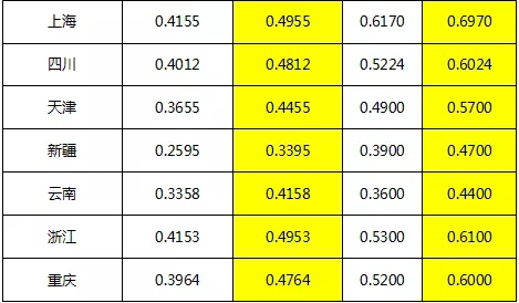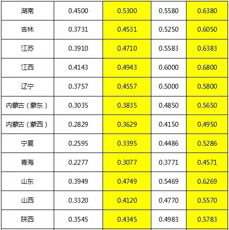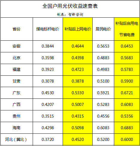 有人統計了各省煤電電價和居民用電價格,按0.08元/kWh計算,其發(fā)電收益如下表: